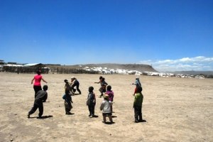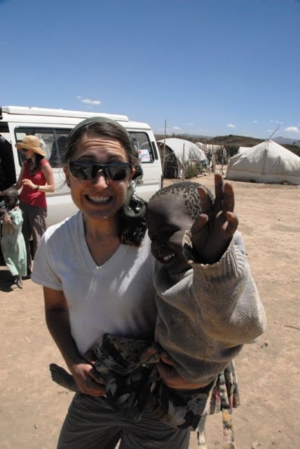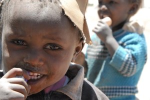 Yesterday was an interesting visit to Mbaruku IDP camp in Kikopey. Tami, Irene and I were joined by three lovely lasses from Ireland and their Australian friend who had heard about the Dust Babies and wanted to assist in some way. As soon as the van rounded the corner we had a hard time seeing the camp with all of the dust that was blowing around. When we arrived, a group of men were trying to salvage a tent that had started to blow away and within minutes our sun screened skin was coated with a thick layer of dust. The wind swept through the camp, bringing with it dust galore! The poor kids started coming toward us, most of them shielding their little eyes from the dust.