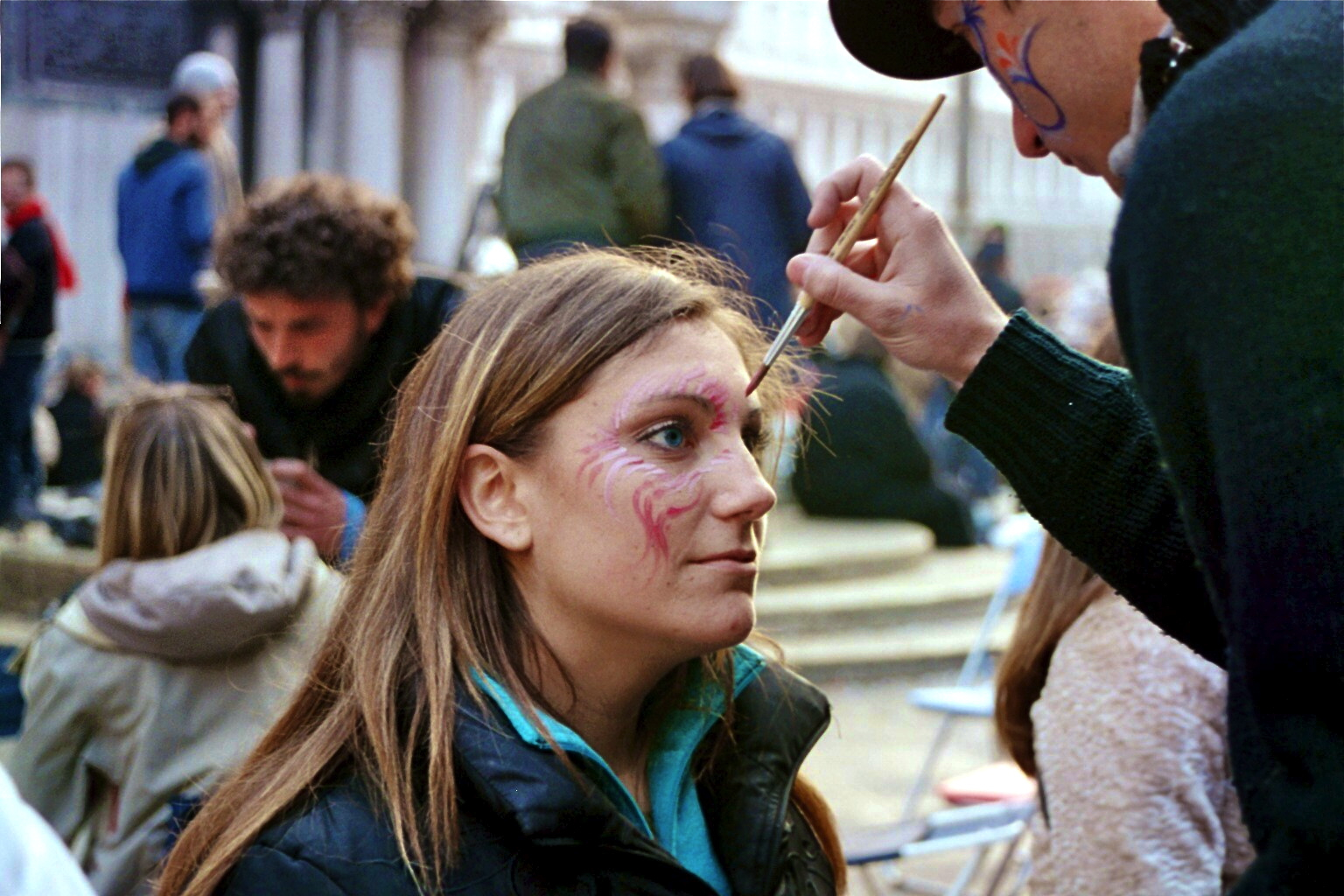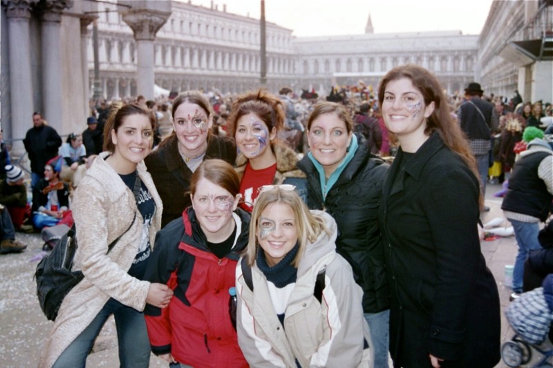 Several of us girls got talked into getting our faces painted in the spirit of Carnevale. As the man was applying the sparkly paint to my face with a fine tipped paint brush all I could think about was if we had any running water at the hostel. And if we did, it would certainly be cold. But… “When in Rome!” Or, in this case, “When at Carnevale!”