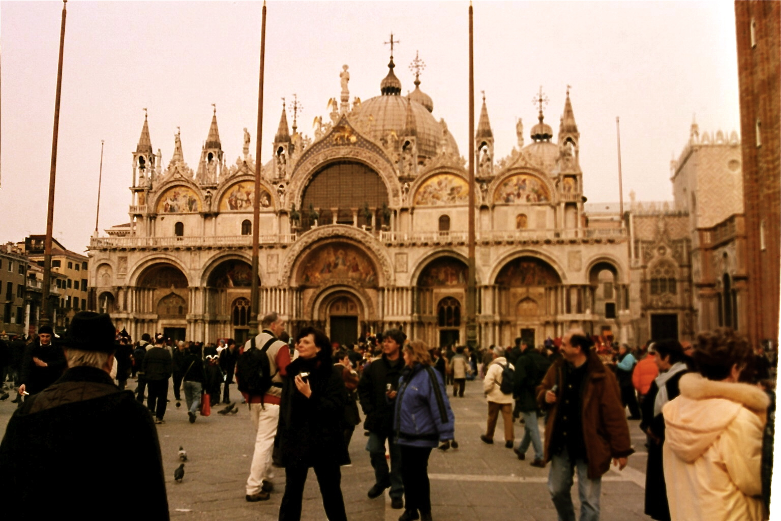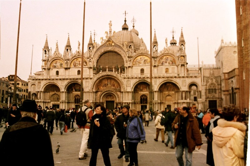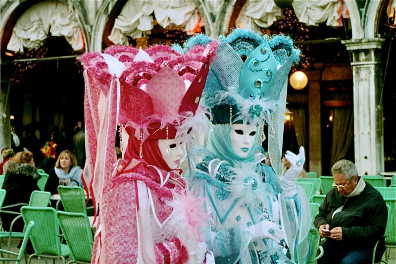 Though it took us almost two hours to do so (Venice, even without the wine, is difficult to navigate and we quickly realized that the maps aren’t much help) we finally found the main piazza – Piazza di San Marco. It is beautiful, bordered on one side with a huge church of the same name and on another by the sea. I hear that at high tide the whole piazza has been known to flood! There was a stage set up in the front and we were able to catch the tail end of a costume contest. Second place was actually awarded to a couple from California wearing nothing but bubble wrap fashioned into a 17th century-esque costume. They said they’d been working on them for over six months and that it was a challenge to fly the costumes to Italy without them popping or coming apart. I guess they had a pretty interesting conversation with the man at customs, but when when finally were able to explain that they were costumes for Carnevale he suddenly completely understood, apologized for bothering them, and wished them luck.