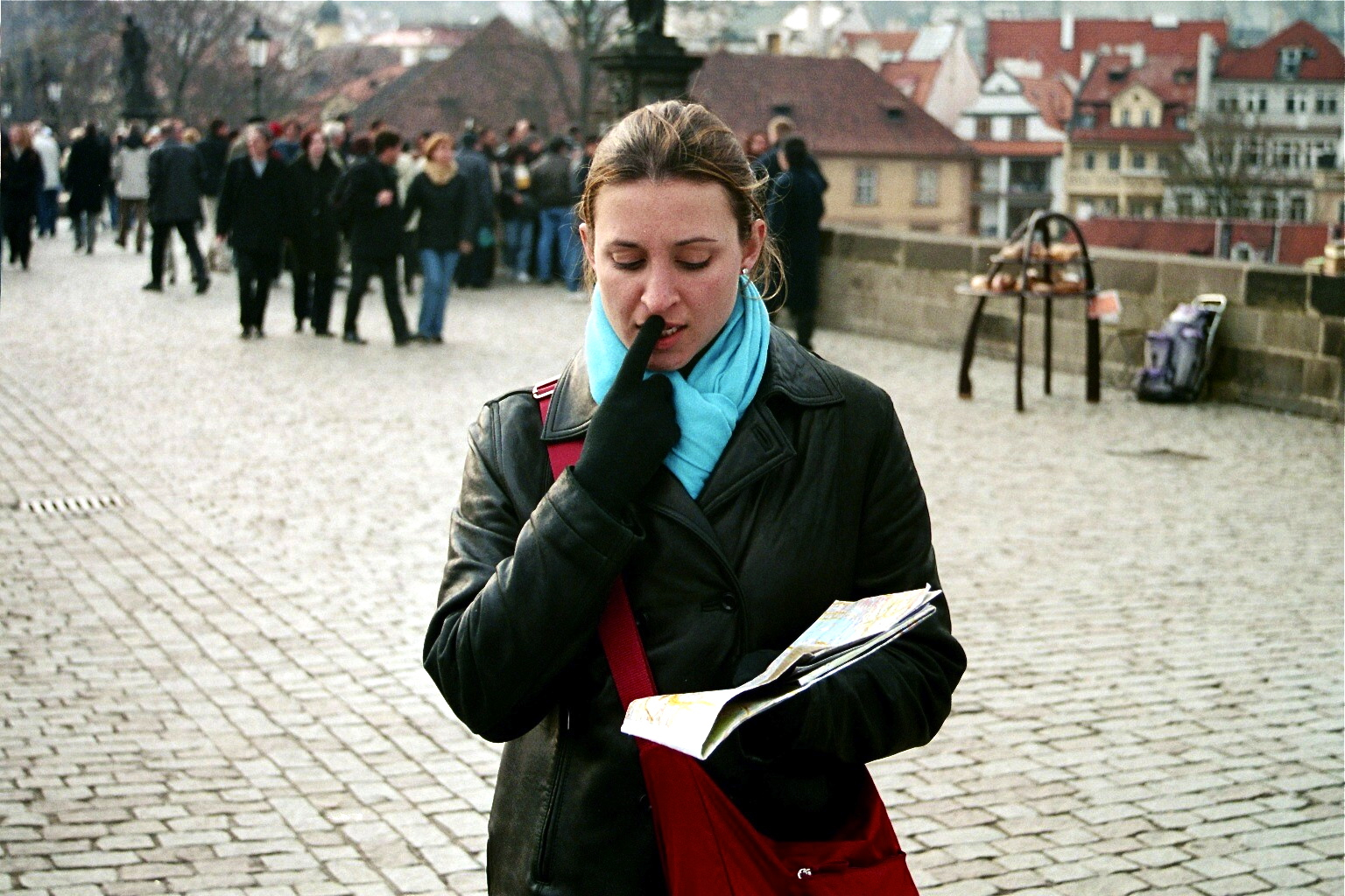 We got off of the metro and were immediately greeted by immense and beautiful structures! Unfortunately, we found Czech almost impossible to translate, so we didn’t always know what we were looking at. Kristin #2 had some torn out pages from her enormous copy of Let’s Go Europe, without which we would have been entirely lost. Slowly we made our way through the crowds to Old Town. There was a very lively square, surrounded by several tall buildings, including Týn Church. And, because there seems to be one in every city I visit, there was a carnival going on in the square, complete with pony rides, games and vendors. We opted for a late lunch and plan out the rest of our visit. I had a big of a flash back to Barcelona as Kristin #1 became buried in her map though that didn’t stop me from trying to get lost and figure the city our organically.