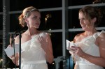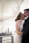 A couple of weeks ago I had the honor of capturing the nuptials of Brooke and John at the Adler Planetarium.  I had so much fun working with the two of them during their engagement session last fall and was completely blown away (pun?) by their gorgeous wedding.  The wind wasn’t cooperating and the ceremony was moved indoors at the last minute but that certainly didn’t keep us from heading outside after the ceremony to take some dramatic shots making use of Brooke’s veil.  Brooke and John did a wonderful job of turing the Adler Planetarium into a truly magical venue complete with fantastic custom made lighting designs, the glow of hundreds of candles, the bright splashes of the flowers and the overlying theme of travel – something with which first drew the couple together.