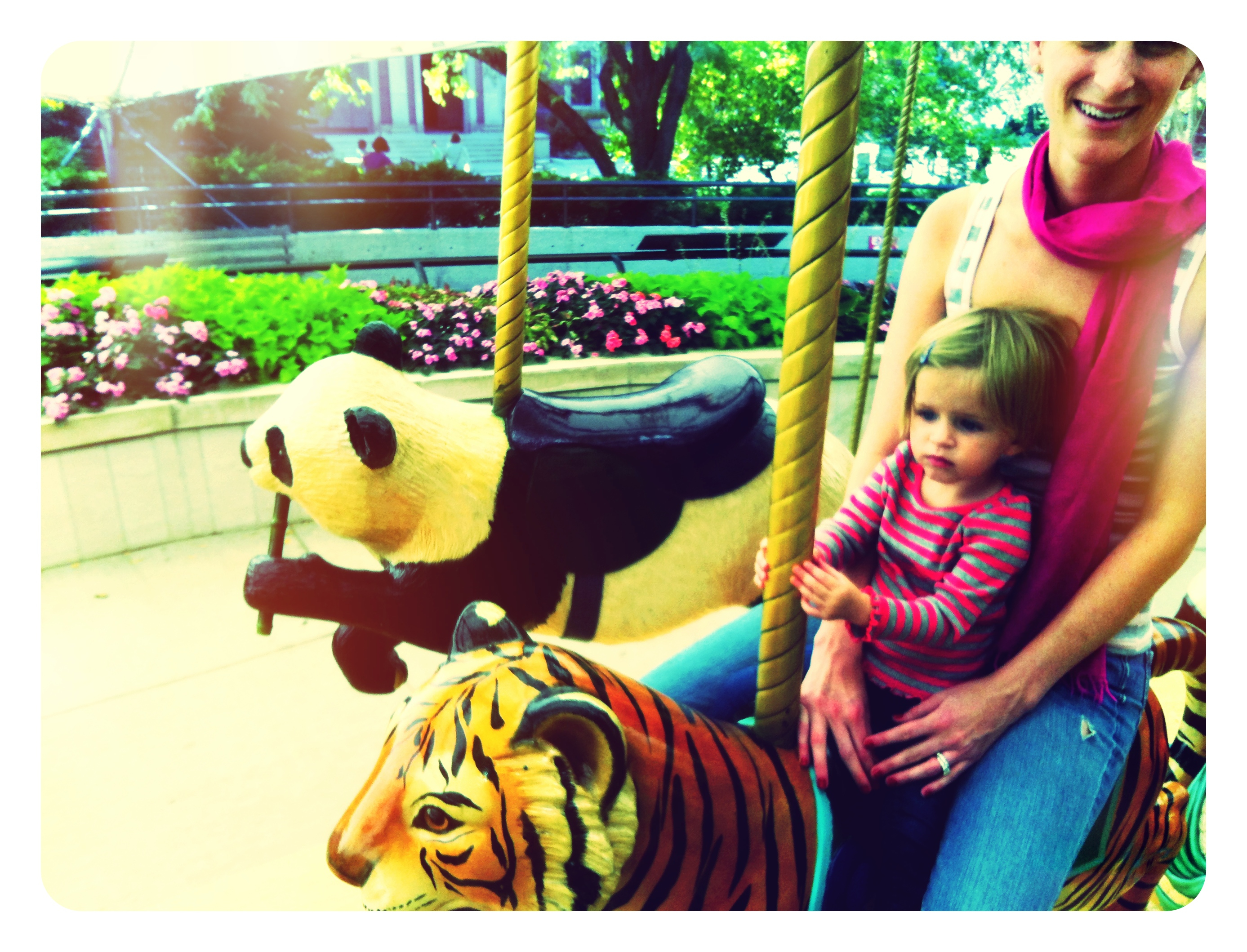 Not so sure about the tiger ride but once the carousel stopped she wanted “more, please.”