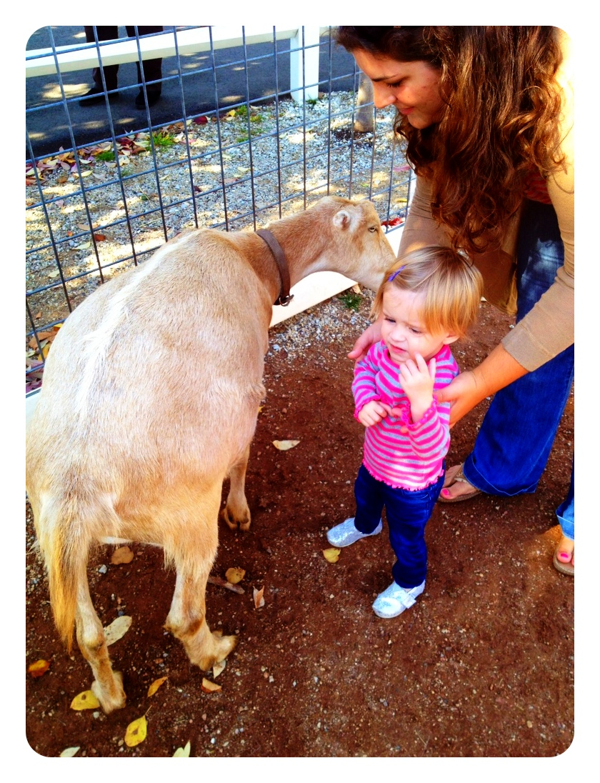 Our visit began in the farm section where we met a few goats. Chloe thought they were big puppies and was pretty eager to say hi at first. Soon, however, she realized that they weren’t puppies and didn’t quite know what to make of these large, smelly, funny looking creatures.
