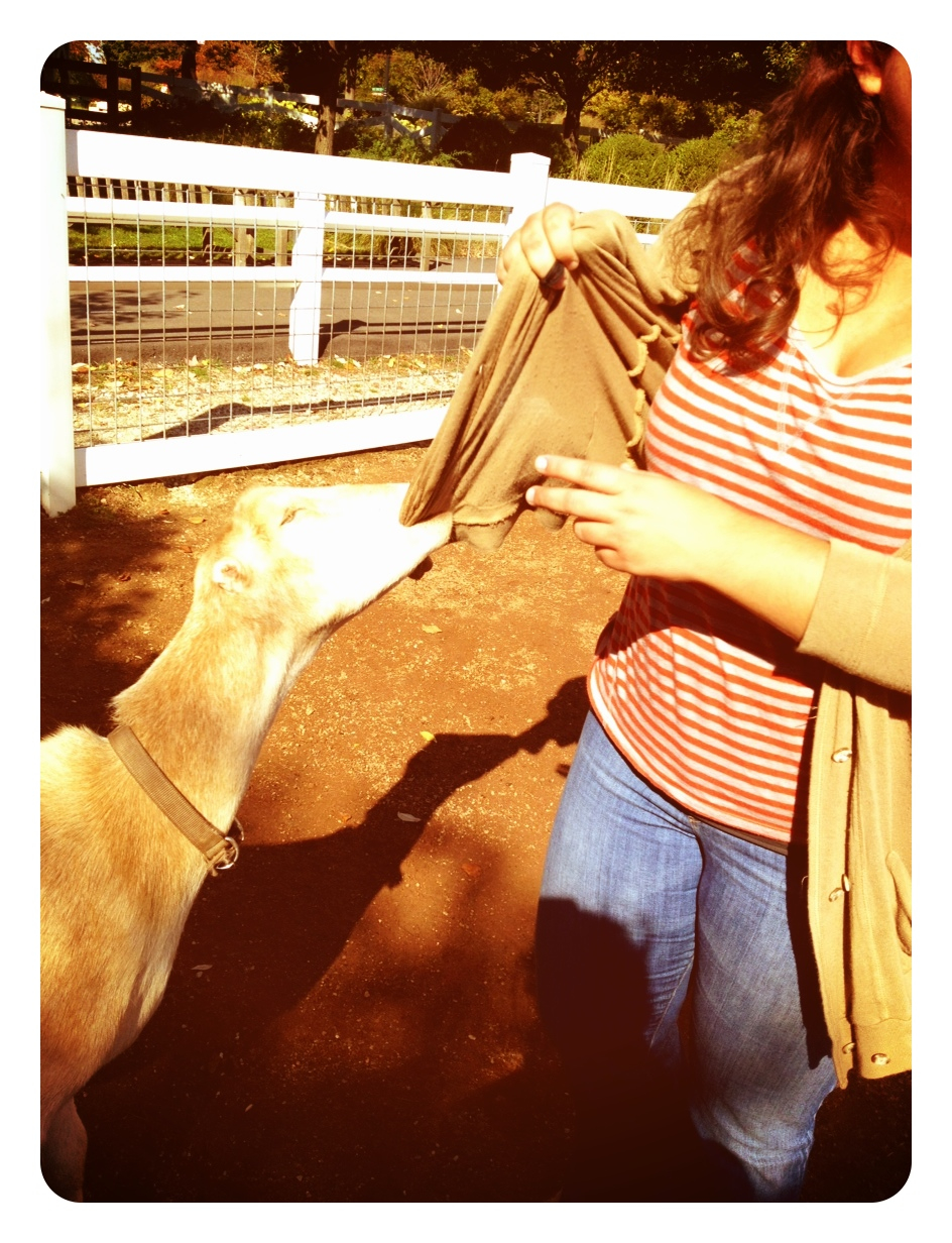 One goat tried several times to eat various pieces of my wardrobe.